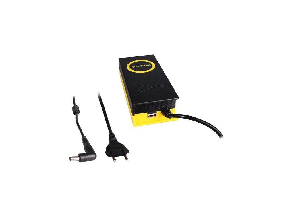 Napájecí adaptér PATONA s výkonem 90 W pro vybrané modely noteboků. Na adaptéru je k dispozici také USB port pro nabíjení vašich mobilních zařízení.