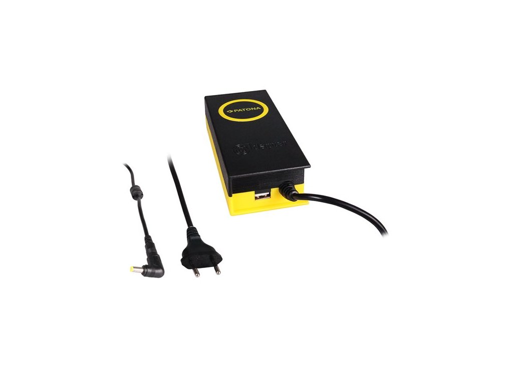 Napájecí adaptér PATONA s výkonem 90 W pro vybrané modely noteboků. Na adaptéru je k dispozici také USB port pro nabíjení vašich mobilních zařízení.