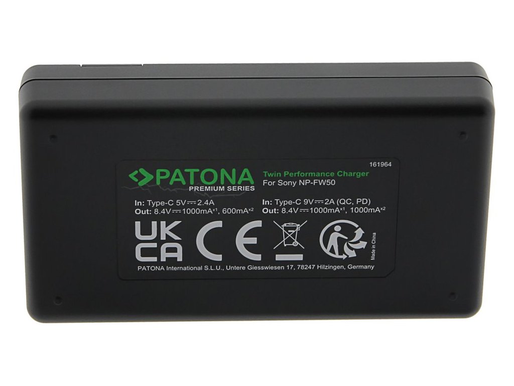 S rychlonabíječkou Patona DUAL lze nabíjet současně 2 baterie najednou, bez ohledu na to, zda mají obě baterie stejnou kapacitu. Nabíječky jsou vyráběny dle nejvyšších evropských standardů kvality a vyznačují se extrémně dlouhou životností. Nabíječku lze napájet skrze USB typ C port.