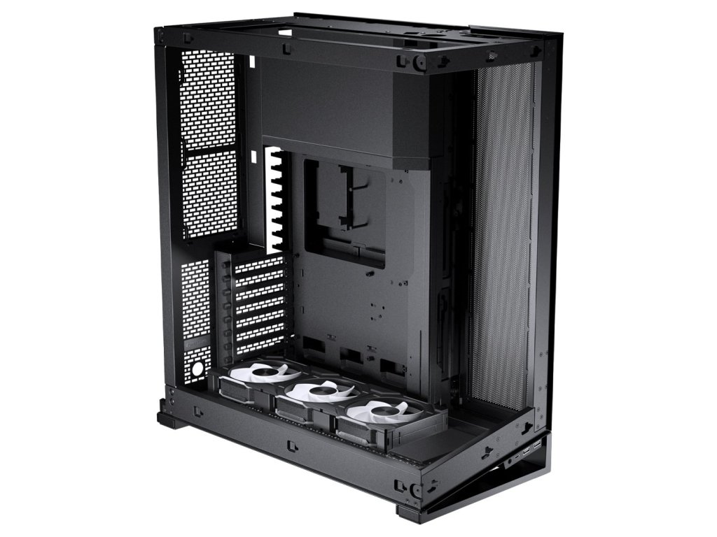 Ventilátory jsou umístěny kolem základní desky, srdce systému, jako v rámu obrazu. Téměř bezešvé skleněné panely poskytují dokonalý výhled na všechny komponenty vašeho systému.