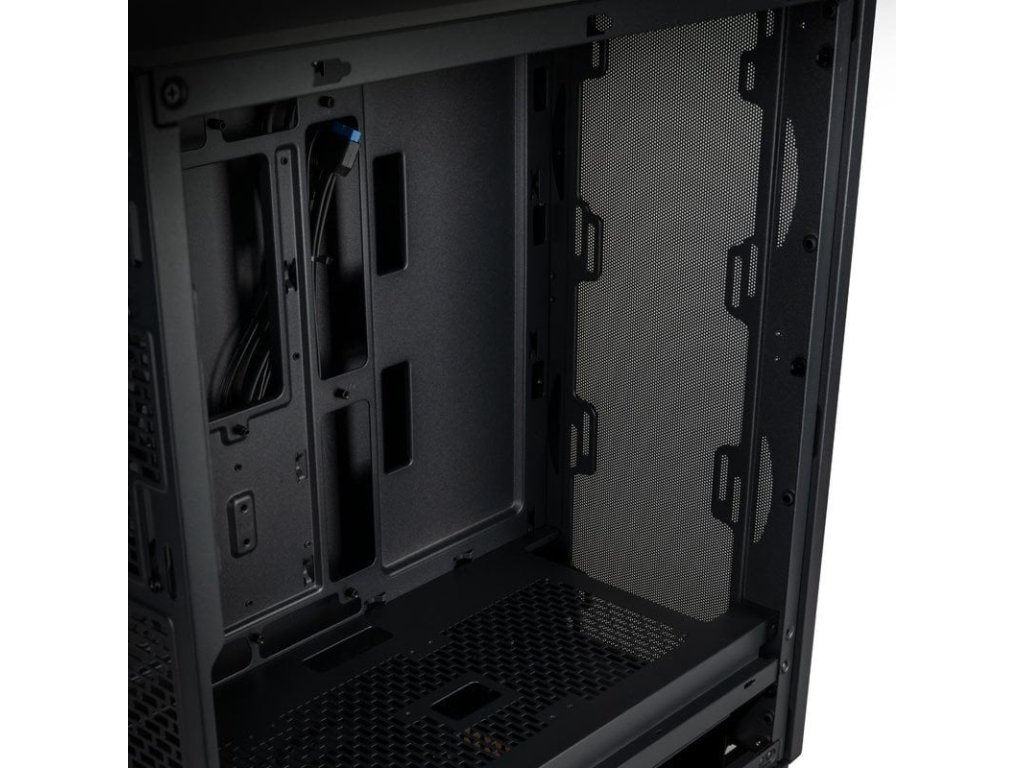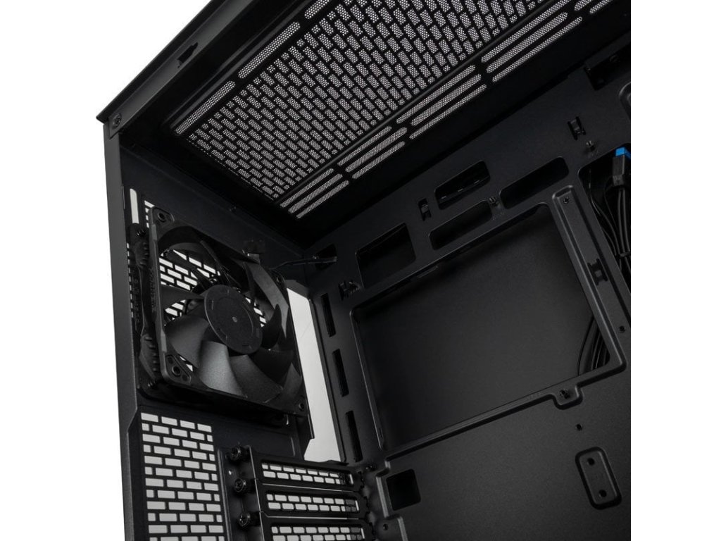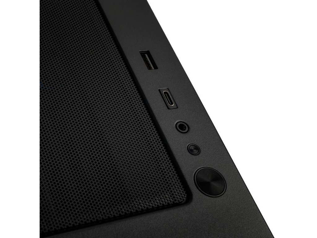 Midi tower pouzdro s bočním panelem z tvrzeného skla, vynikající proudění vzduchu díky přední části z jemné síťoviny, Prostor pro radiátory do 360 mm, Předinstalovaný 120mm ventilátor, Podpora základních desek se zadními konektory