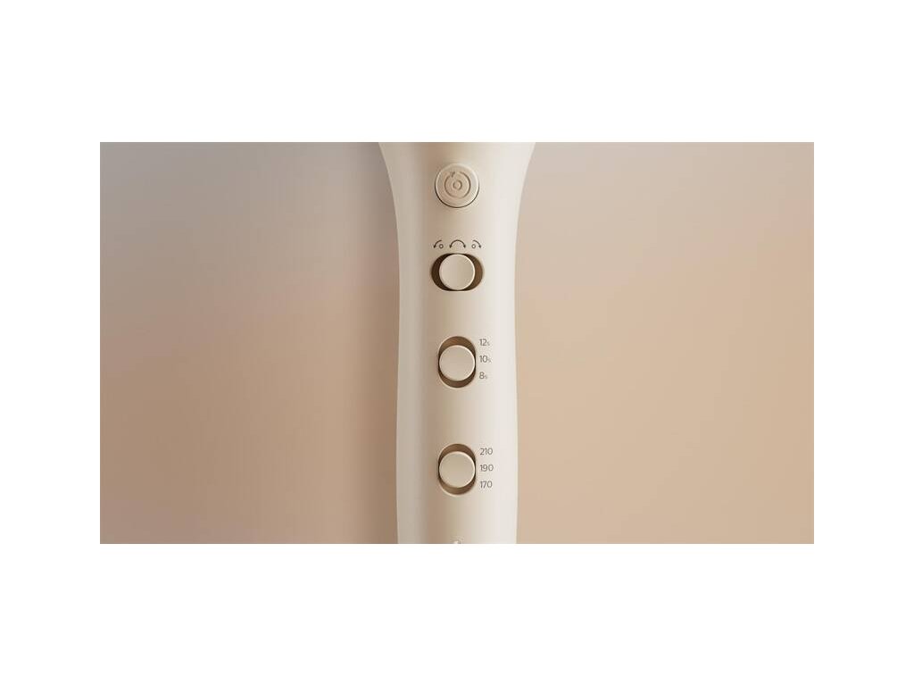 3 nastavení teploty (170, 190 a 210 °C), času (8, 10 a 12 sekund) a směru natáčení vlasů.