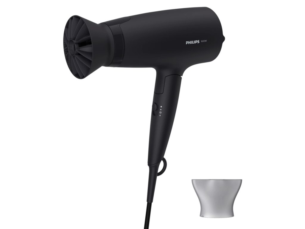 Fén výkon 1 600 W vám zajistí styling jako ze salónu, 3 nastavení teploty/rychlosti, teplý/studený vzduch, vysoušení, regulace proudění vzduchu, délka kabelu 1,8m, nástavcec ThermoProtect, sklopná rukojeť, černý