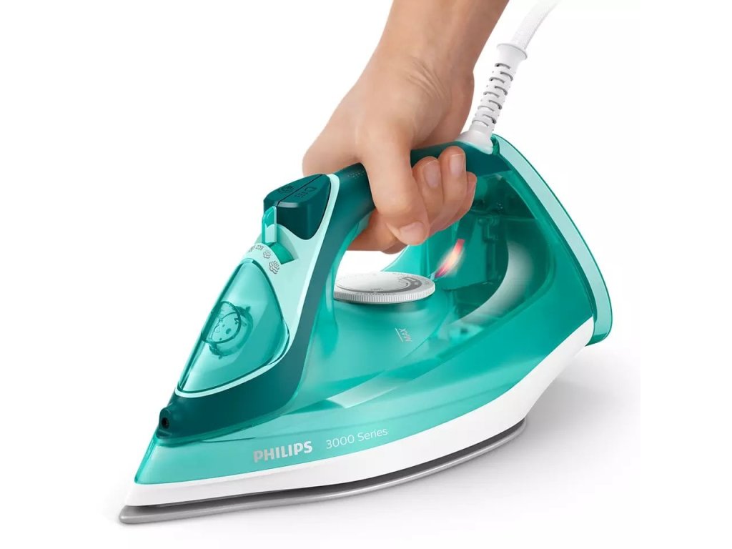 Systém Drip-stop zabraňuje úniku tekutiny z žehličky, díky čemuž na tkanině nevznikají skvrny způsobené kapkami vody. To znamená, že můžete bezstarostně žehlit při jakékoli teplotě.