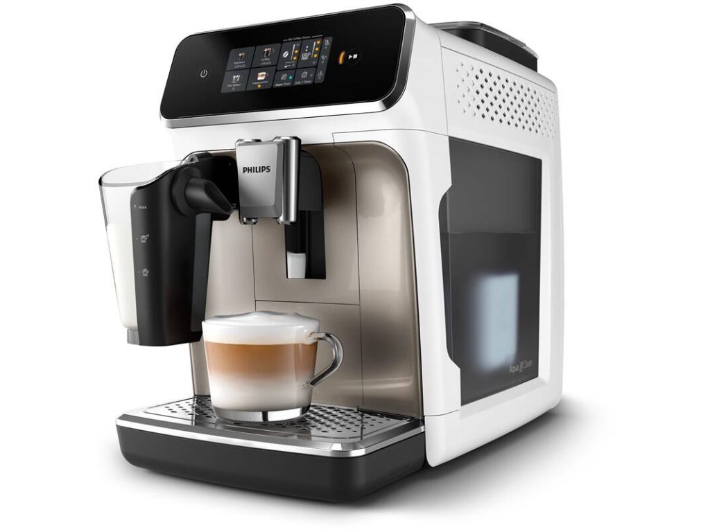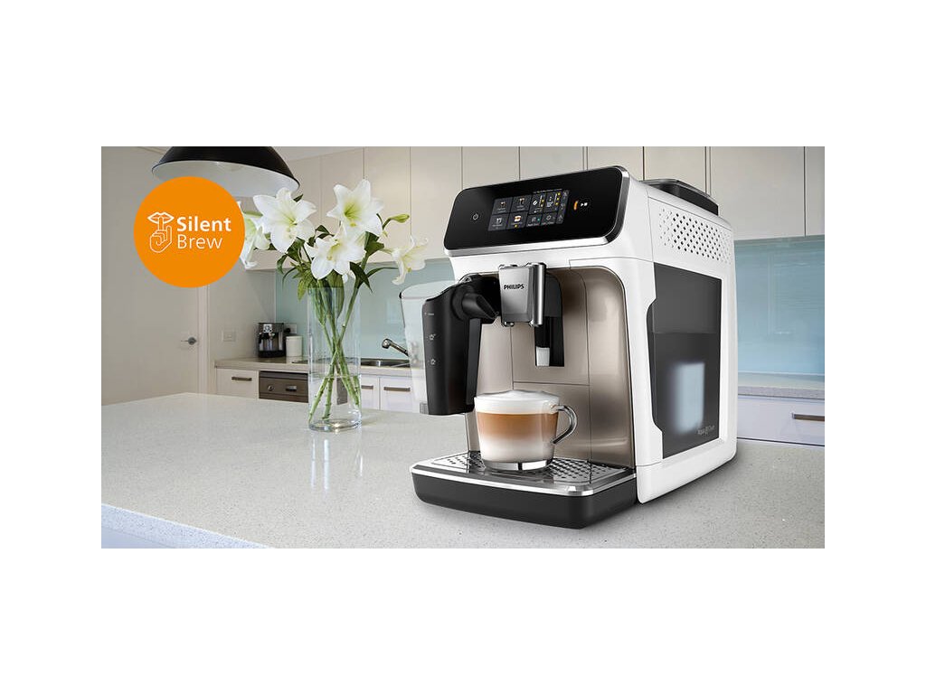 automatický kávovar • tlak 15 bar • dotykový displej • 3 st intenzity kávy • 3 st teploty vody • 12 st hrubosti mletí • vhodný pro zrnkovou i mletou kávu • mléčný systém LatteGo • technologie SilentBrew • ruční čištění • nádoba na mléko s objemem 0,26 l