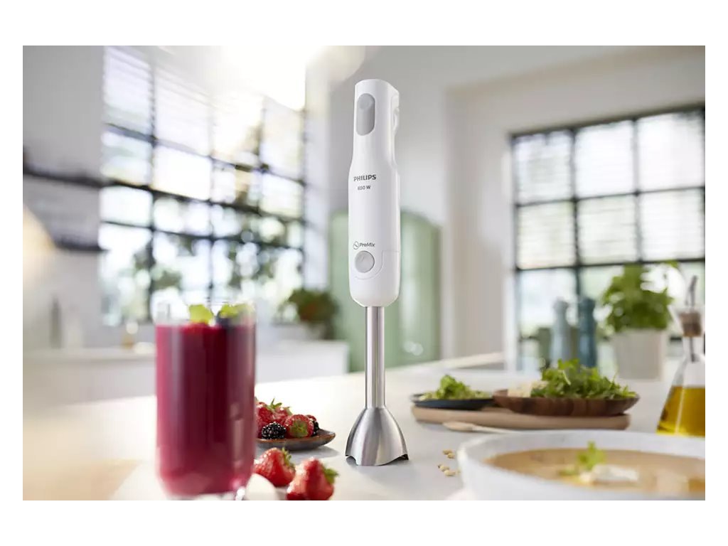 Intuitivní a lehký mixér disponuje ergonomickým designem, který s sebou přináší jednoduché ovládání a používání. Stisknutím jediného tlačítka se spustí rychlé a účinné mixování jídel. Spodní část ponorného mixéru má speciální vlnitý tvar, který zabrání postříkání nebo případnému nepořádku při mixování. Součástí je také praktická nádoba o objemu 0,5 l.