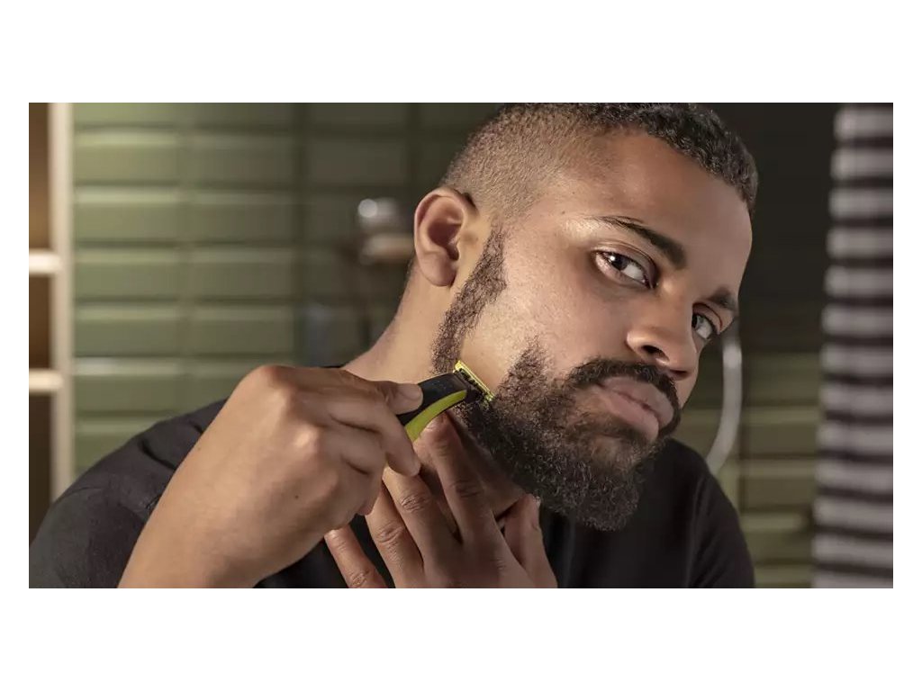 Philips OneBlade je vybaven novou revoluční technologií pro styling tváře a péči o vzhled. Dokáže zastřihnout, vytvarovat a oholit vousy všech délek. Díky systému dvojí ochrany, klouzavému potahu v kombinaci se zaoblenými špičkami, je holení snazší a pohodlnější. Technologie holení představuje rychle se pohybující ostří (200× za sekundu), které je účinné i pro dlouhé vousy.
