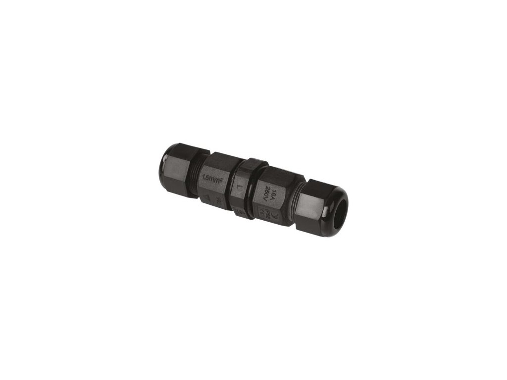 Popis produktuMaximální provozní napětí – 250 V AC.Maximální provozní proud Maximální průřez kabelu – 3× 2,5 mm2.Materiál připojovací svorky – poniklovaná mosaz.Materiál těsnění – silikon.Výhody produktuVodotěsný konektor sloužící ke snadnému propojení dvou třížilových vodičů.