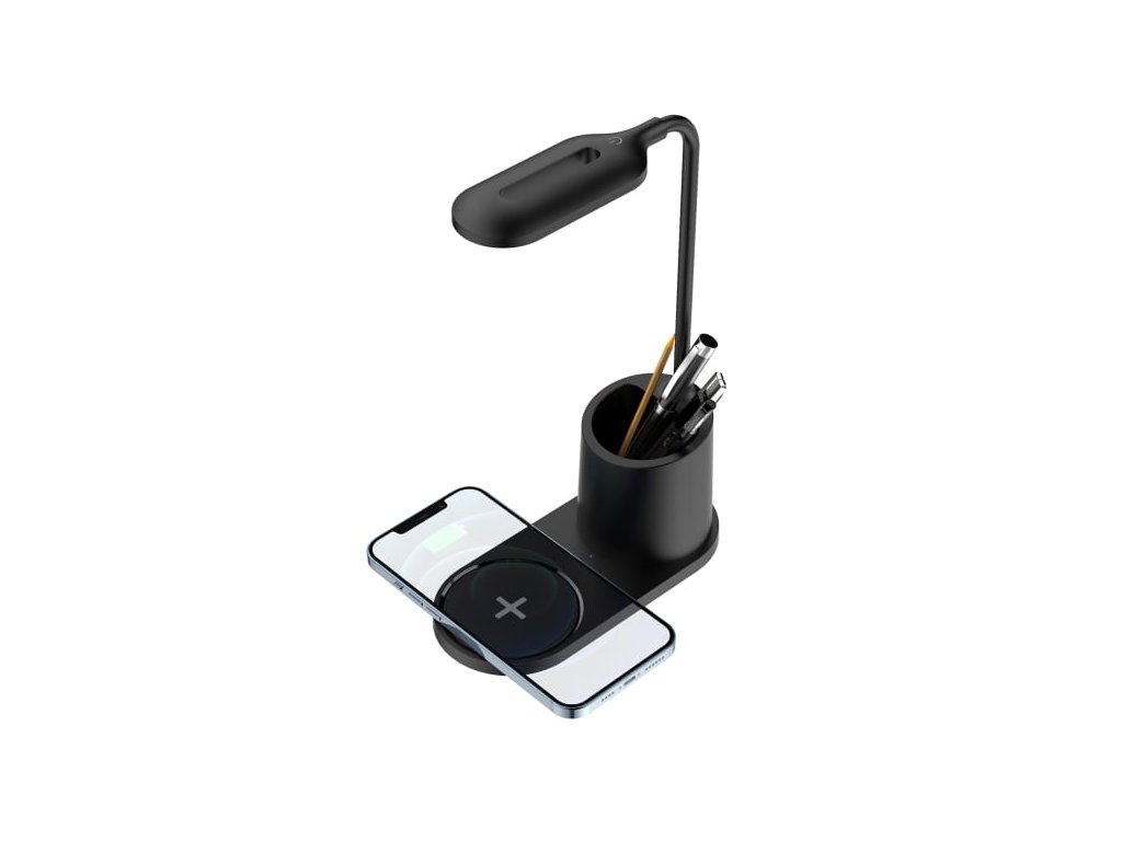 Stolní LED lampa PDL1930 je praktickým pomocníkem při práci, studium i relaxaci. Její kompaktní design a elegantní provedení se skvěle hodí na pracovní stůl, noční stolek nebo do domácí kanceláře. Tělo lampy je vyrobeno z odolného materiálu s hladkým povrchem a dostupné je v bílé a černé variantě. Lampa je vybavena úsporným LED zdrojem, který poskytuje neutrální až studené bílé světlo v rozmezí 3200–6500 K. Tento rozsah teploty světla je ideální pro dlouhodobou činnost bez nadměrného namáhání očí – například při čtení nebo práci na počítači. Index podání barev (CRI) přesahuje hodnotu 80 Ra, což znamená, že barvy osvětlovaných předmětů působí přirozeně. Díky dotykovému ovládání si můžete plynule regulovat intenzitu světla podle aktuálních potřeb. Ohebný krk lampy umožňuje přesné nastavení směru svícení. Lampa navíc nabízí integrovanou bezdrátovou nabíječku telefonu, která pracuje na základě standardu Qi. Stačí položit smartphone na vyznačenou plochu základny a zařízení se začne nabíjet. Tato plocha je vybavena měkkou gumovou podložkou, aby se předešlo poškrábání mobilu. Napájení samotné lampy probíhá prostřednictvím USB kabelu – tedy z běžné USB nabíječky, powerbanky nebo počítače. (USB adaptér není součástí balení.) LED zdroj má životnost až 30 000 hodin. Adaptér není součástí balení. Napájecí kabel je součástí balení. Napětí napájení je 9V/1,66A. Lampa je vybavena vestavěnou LED technologií – není potřeba dokupovat žárovku. Lampa obsahuje integrovanou bezdrátovou nabíječku kompatibilní s Qi zařízeními. Možnost nastavení intenzity světla (stmívání).