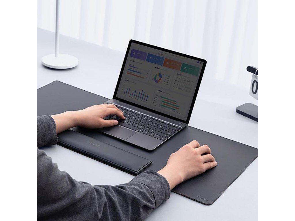 Podložka na stůl pod notebook Baseus MagPro Series II Smart, opěrka zápěstí a stojan na notebook,rozměr 340 x 770 mm,vyrobena z PU ekokůže,odolná vůči vodě a mastnotě,rozměry stojanu/opěrky pro zápěstí: 340 x 80 mm x 44 mm, barva černá
