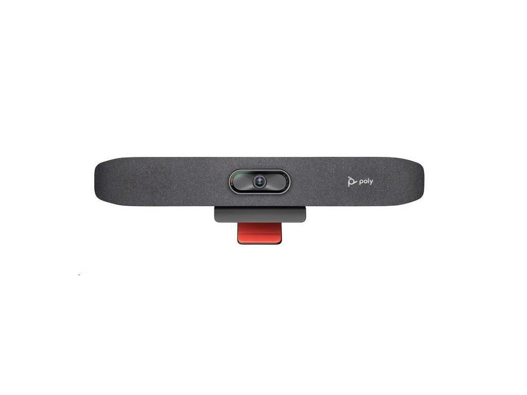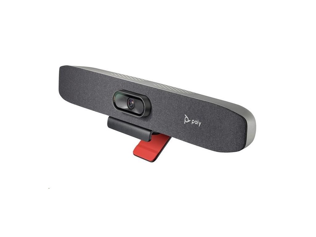 Kompaktní video lišta • Pro malé místnosti (3-5 osob) • 4K UHD kamera (120° dFoV) • Poly DirectorAI (automatické sledování a rámování) • 3 mikrofony (dosah 4,57 m) s Poly NoiseBlockAI a Acoustic Fence • USB-C připojení (5 Gb/s) • Wi-Fi a Bluetooth