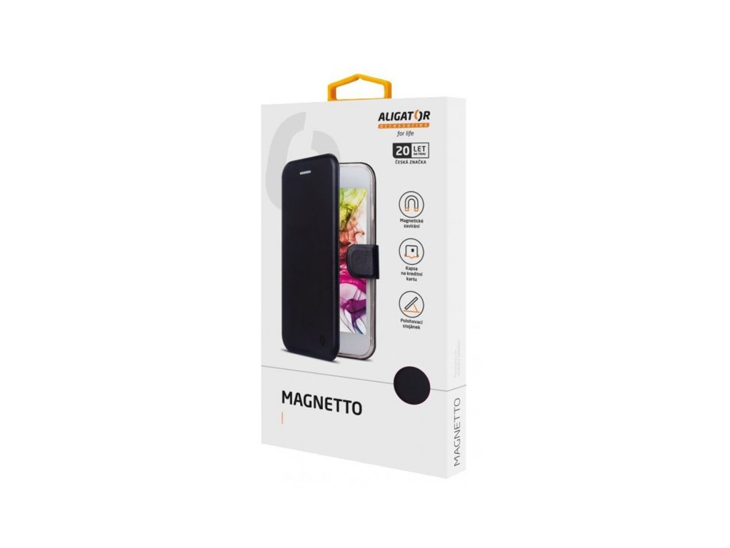 Dokonale propracovaný design, ultratenké provedení, přihrádka na kartu nebo vizitky, zavírání pomocí magnetické přezky, snadné uchycení mobilního telefonu pomocí silikonové vaničky, stojánek… To je ALIGATOR MAGNETTO.
