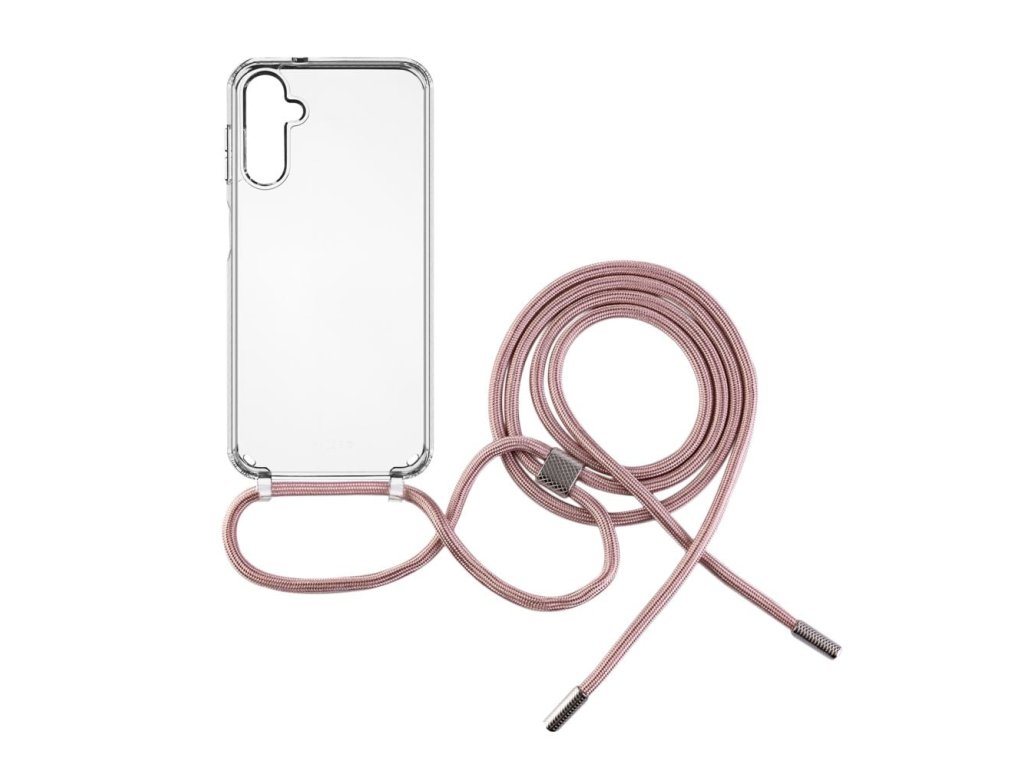 Pouzdro FIXED Pure Neck s růžovou šňůrkou na krk pro Samsung Galaxy A14/A14 5G