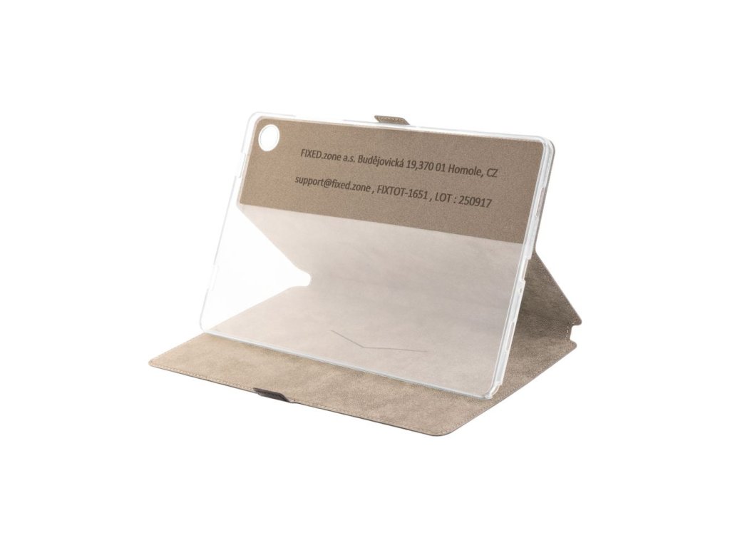 Elegantní, tenké a praktické pouzdro typu kniha FIXED Topic, navržené přímo pro váš tablet. Pouzdro je vyrobeno z kvalitní a odolné PU kůže obšité po okrajích, která zaručí dostatečnou ochranu tabletu před poškozením. Materiál je příjemný na dotek a vyniká vysokou odolností. Odklápěcí přední část pouzdra kryje displej tabletu a je jištěna zavíráním na magnet. Na vnitřní straně odklápěcí části nejdete praktickou kapsu na kreditní kartu. Transparentní TPU kryt uvnitř pouzdra je vyroben přesně na míru danému zařízení. Všechna ovládací tlačítka zůstanou plně přístupná, stejně tak i nabíjecí konektor a reproduktory. Gelový materiál krytu navíc usnadní vložení i vyjmutí tabletu. Díky důmyslné konstrukci jde pouzdro nastavit do praktické pozice stojánku, kterou oceníte zejména při sledování filmů nebo videohovoru. S pouzdrem FIXED Topic získáte dostatečnou ochranu pro váš tablet v elegantním a stylovém provedení.