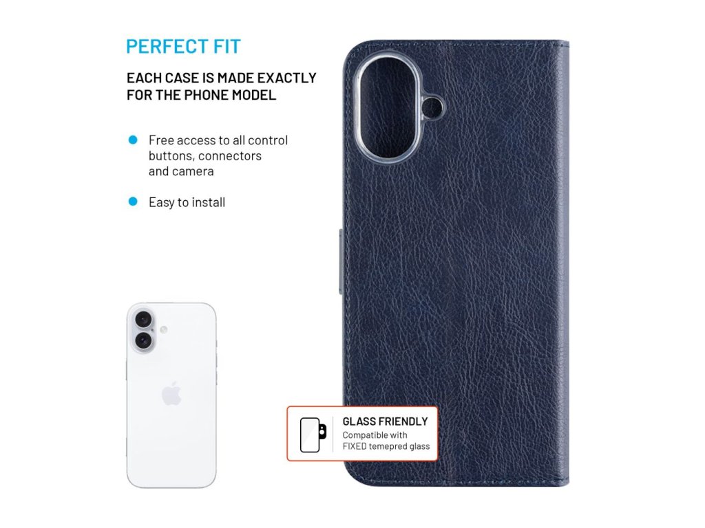 Pouzdro typu kniha FIXED Opus pro Apple iPhone 16, modré