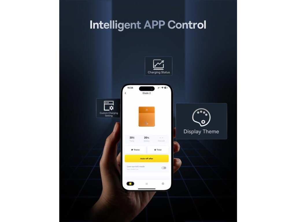Inteligentní digitální displej poskytuje informace o zbývajícím výkonu, proudu a napětí v reálném čase a nabízí uživatelům přehled o procesu nabíjení.