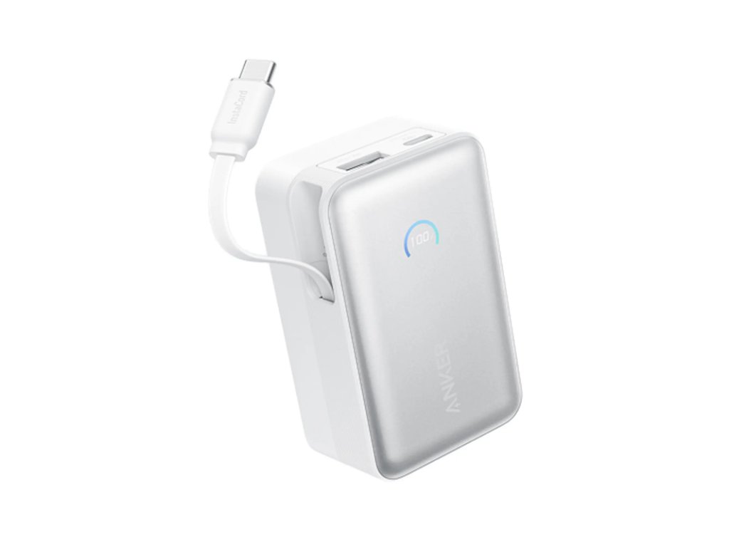 Powerbanka Anker Nano, kapacita 10000mAh, výkon až 45W (Power Delivery), s integrovaným kabelem USB-C, kompaktní a lehký design vhodný na cesty, barva bílá