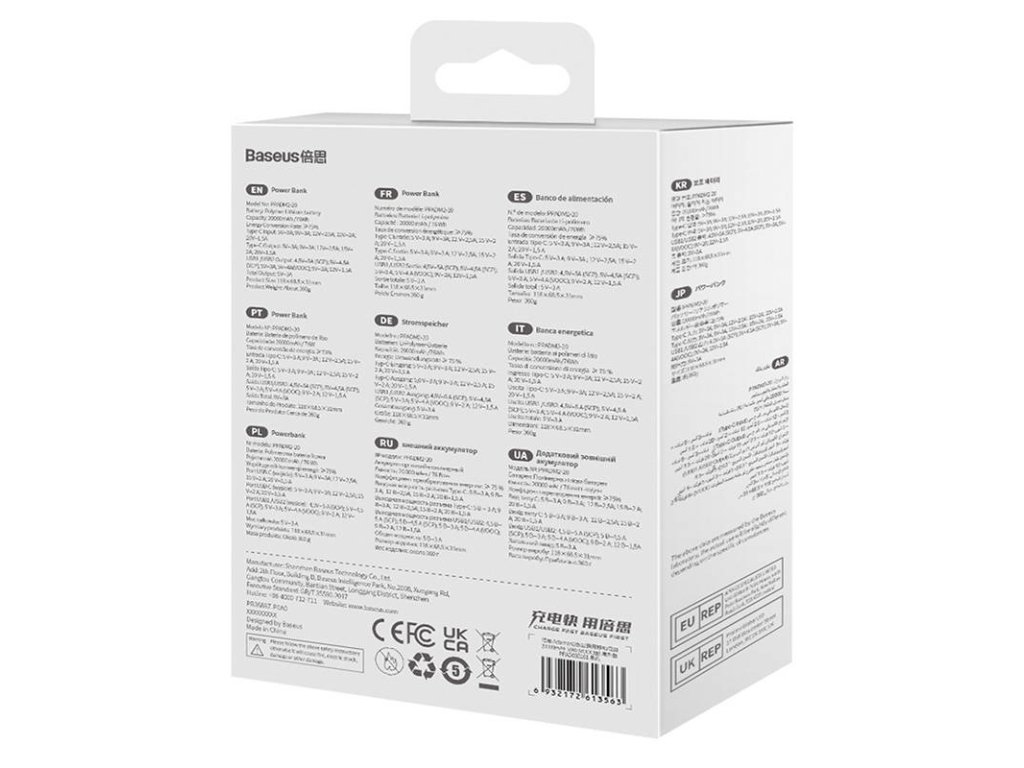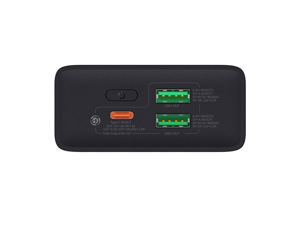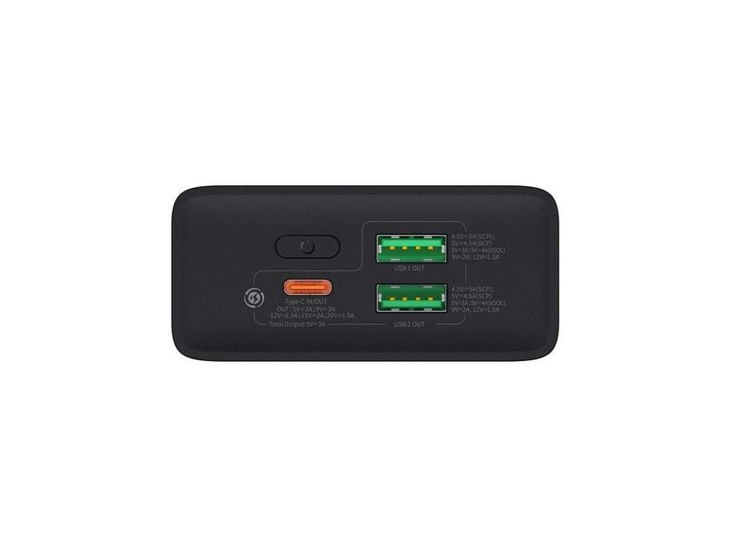 Power banka s kapacitou 20000 mAh a výkonem 30 W. Je vybaven třemi porty. Navrženo tak, aby fungovalo s většinou populárních zařízení napájených přes USB/USB-C, jako jsou tablety, iPhony, telefony se systémem Android.