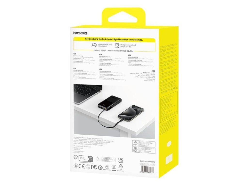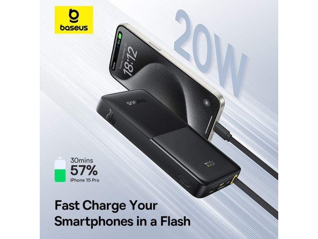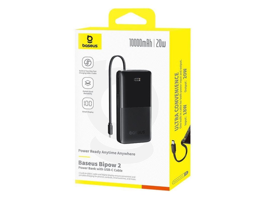Power Bank Baseus Bipow 10000mAh 20W je kompaktní, vysokokapacitní určená pro uživatele na cestách. Tato powerbanka s funkcemi rychlého nabíjení, vestavěným kabelem typu C je výkonná a uživatelsky přívětivá, takže je ideální volbou pro nabíjení chytrých telefonů, tabletů a dalších elektronických zařízení.