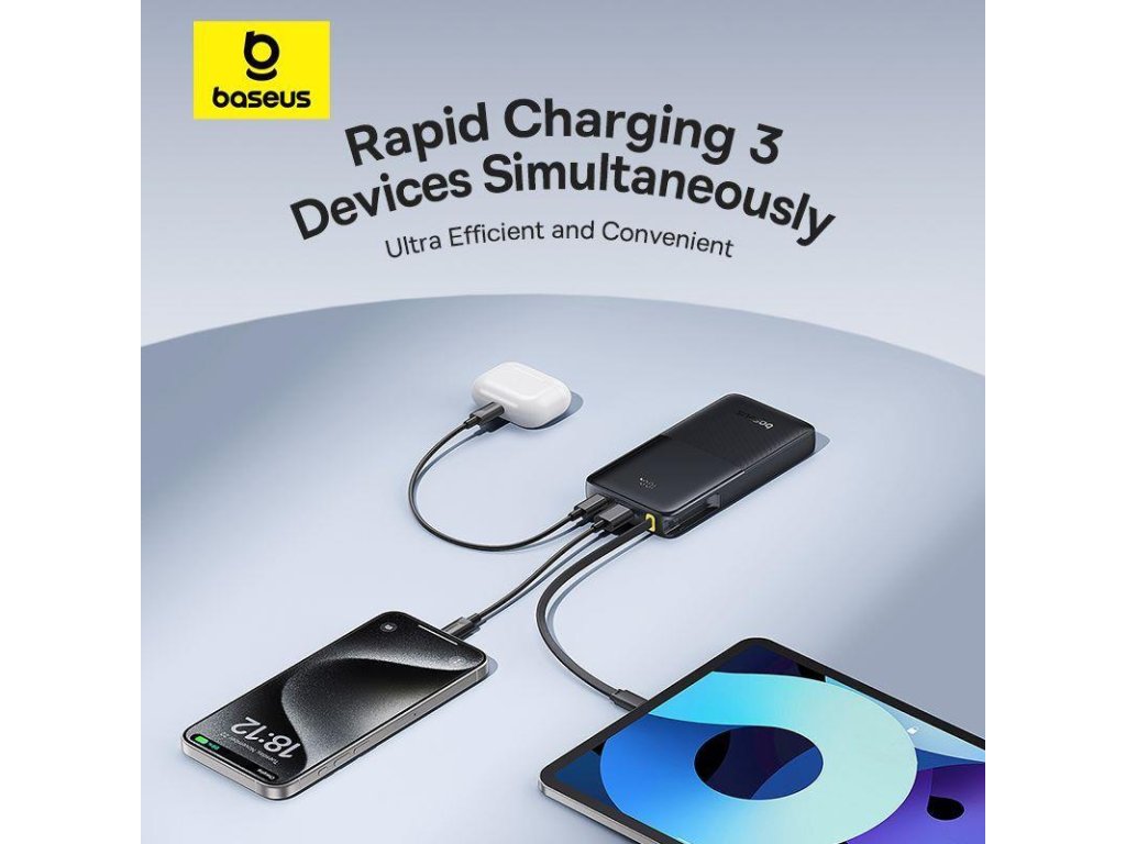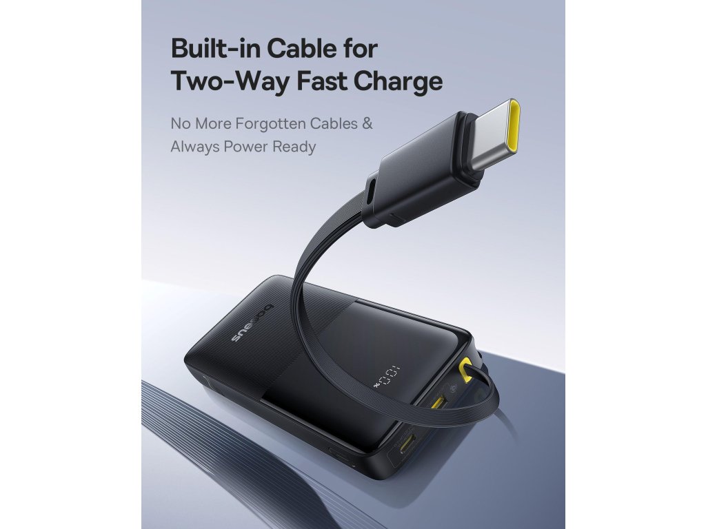 Powerbanka která je vybavena výstupními porty USB-A a USB-C a integrovaným kabelem typu C , umožňuje nabíjet více zařízení současně.