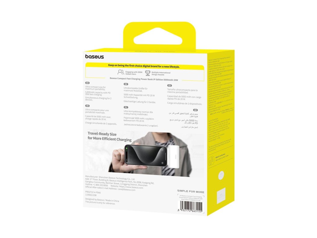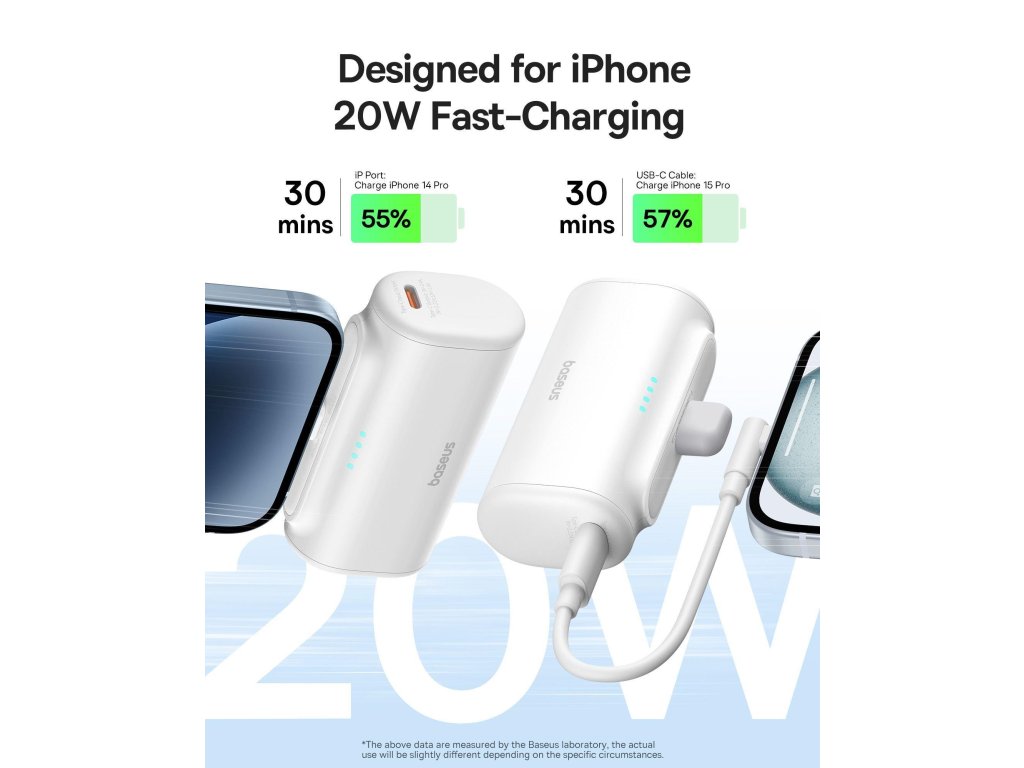 Díky 20W technologii rychlého nabíjení vám Baseus Compact Mini Backup Battery umožňuje rychle dobít vaše zařízení.