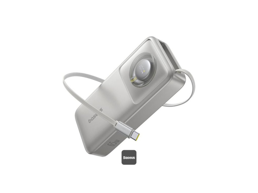 Powerbanka Baseus Free2Pull 20000mAh, 65W, s kabelem USB-C bílá