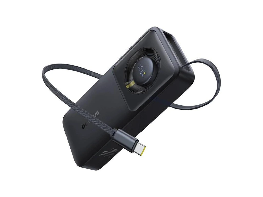 Powerbanka Baseus OS Free2Pull, kapacita 10000mAh,výkon 30W - rychlé nabíjení, vestavěný 70 cm dlouhý USB-C kabel,nabíjení 2 zařízení současně- vestavěný USB-C kabel a USB-C port, barva černá