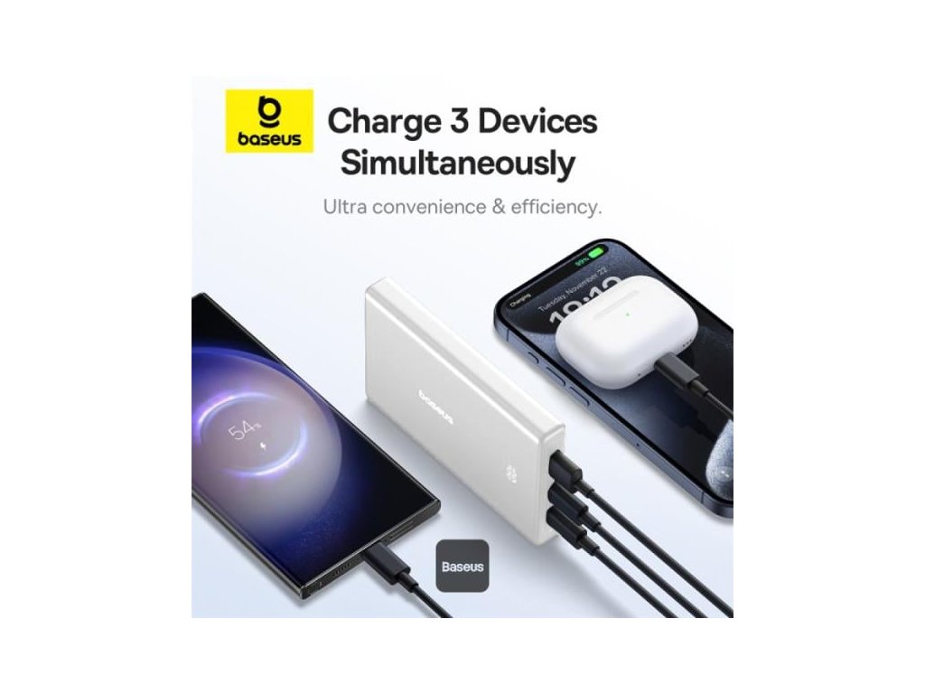 Powerbanka Baseus PicoGo, kapacita 10000mAh,výkon 20W,rychlé nabíjení,inteligentní digitální displej,porty 1xUSB-A, 2x USB-C,součástí balení kabel USB-C/USB-C, 30cm,PD nabíjení až do 60W,barva bílá