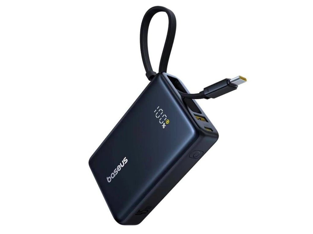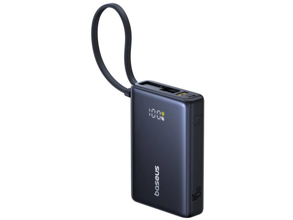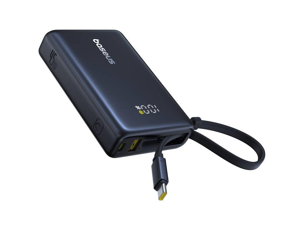 Powerbanka Baseus PicoGo,kapacita 10000mAh,výkon 45W - velmi rychlé nabíjení,podporuje současný vstup a výstup,funguje jako powerbanka i nabíjecí stanice,2x port USB-C, 1x port USB, s kabelem USB-C, barva černá
