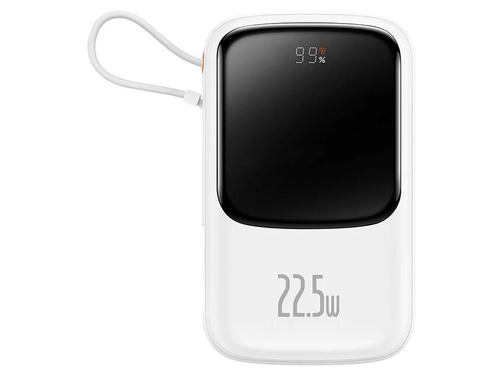 Powerbanka Baseus Qpow Pro, kapacita 10000mAh, výkon 22,5W - rychlé nabíjení, vestavěný kabel USB-C + 2 výstupní porty USB-A a USB-C, nabití powerbanky za 3 hod,displej pro zobrazení stavu baterie, váha 236g, barva bílá