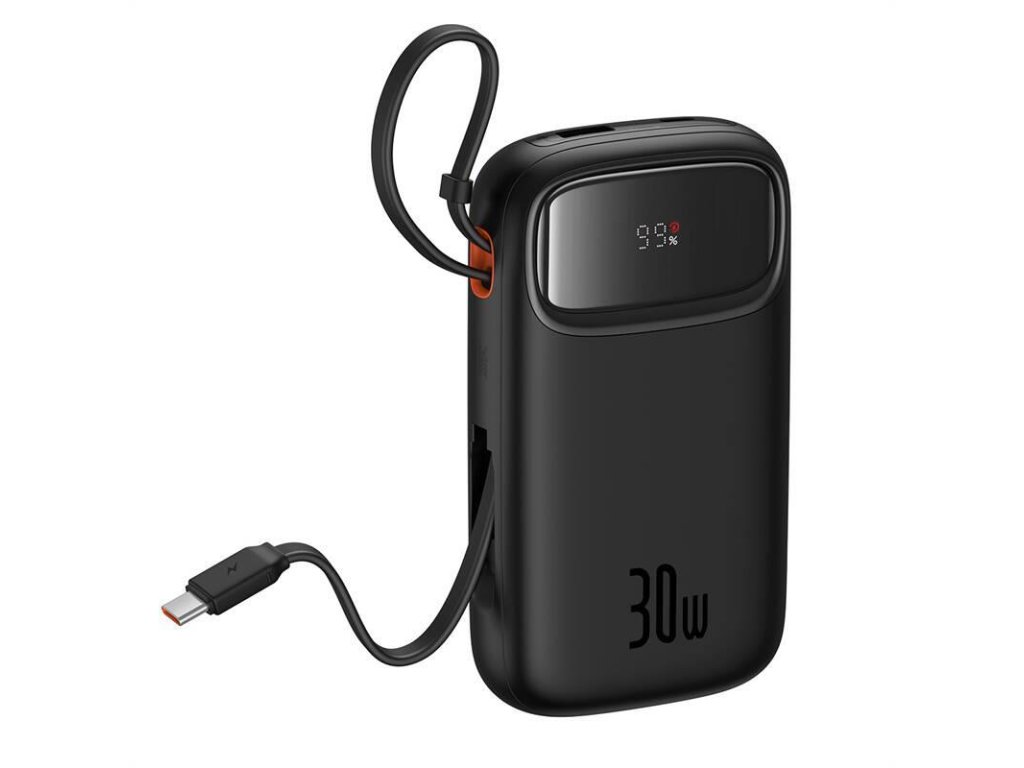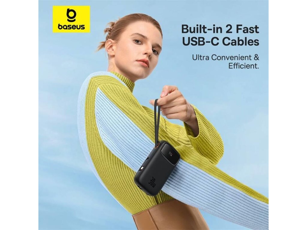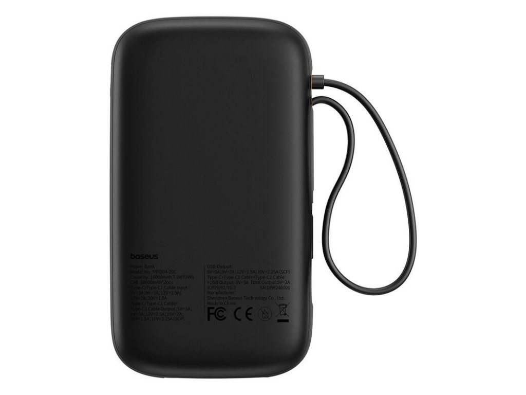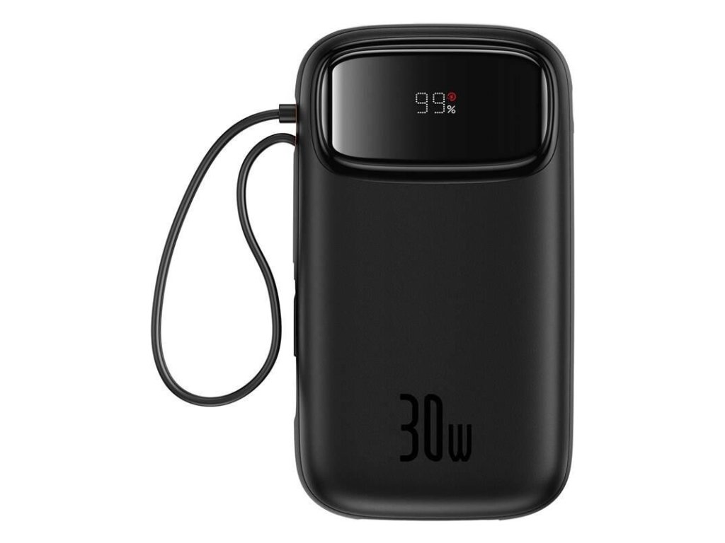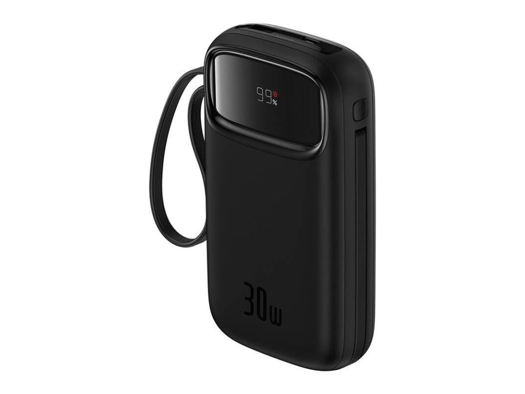 Powerbanka Baseus Qpow2, kapacita 20000 mAh, výkon 30W, 2x USB-C, 1x USB-A, 1x zabudovaný kabel USB-C, váha pouhých 360g, barva černá