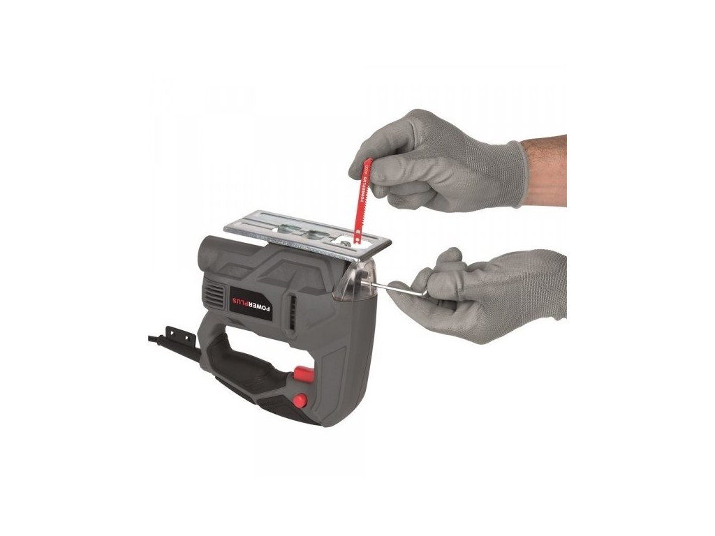 Přímočará pila, 450W, nastavitelná základna 45° vlevo/vpravo, aretační tlačítko, vývod pro prachový adaptér pro připojení k vysavači, měkčené držadlo, typ uchycení U (BD), LED kontrolka o připojení do sítě..