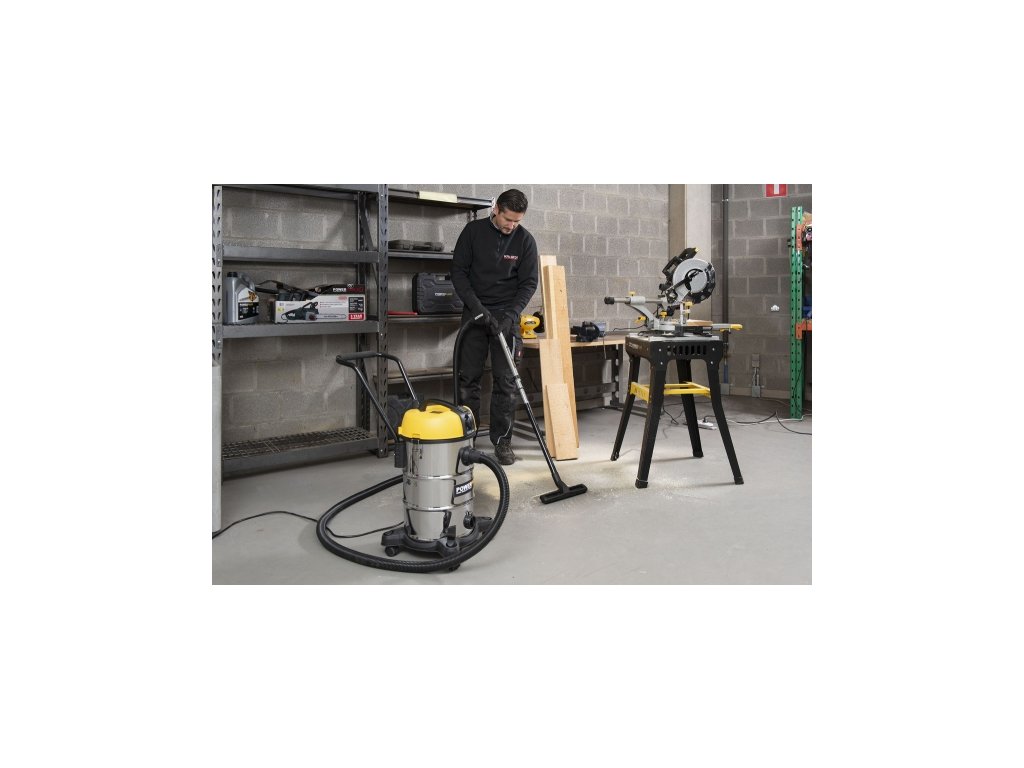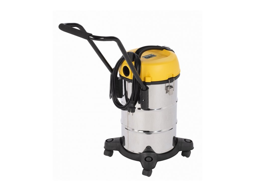 Vysavač sucho / mokro 1 200 W Technická specifikace:Napětí - 220 - 240V / 50HzPříkon - 1.200 WObjem nádrže - 30 LSací výkon - 16 KpaDélka hadice - 3,5 mDélka el. kabelu - 3,5 mHmotnost - 7 kgVlastnosti:Systém sáníSystém foukáníSuché / mokré vysáváníSilná a odolná nerezová nádržExtra zásuvka pro připojení nářadí k vysavačiZásuvka s konstatním proudem max. 2000WFunkce auto startVysoce účinný filtrační systémMůže být použit s nebo bez prachového sáčkuOtvor s víčkem k vypouštění kapalin z nádobyKolečka pro snadnou manipulaciPřídavná rukojeťMěkčené držadloObsah balení:1x vysavač1 x hadice 3,5 m1x teleskopická trubice plus plastová trubka1x kartáč na podlahu zasucha i zamokra1x kartáč 2 v 1 (štěrbinový nástroj)3x papírový sáček na prach1x přídavná rukojeť4x kolečko