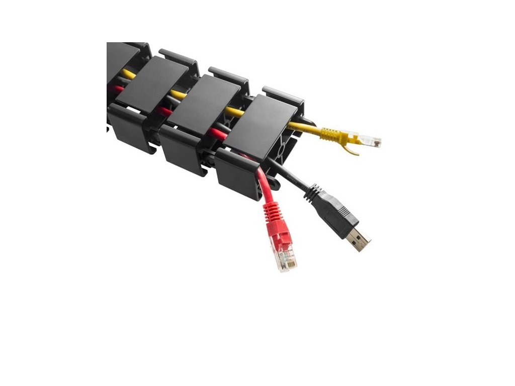 Unikátní design páteře pro vedení kabelů dělá z tohoto organizéru skvělého pomocníka pro každý pracovní stůl. Struktura obratlů umožňuje, aby se páteř prodlužovala nebo smršťovala spolu s výškově nastavitelným stolem. Směřuje kabely od podlahy ke stolu a poskytuje jim ochranu a odlehčení od tahu.