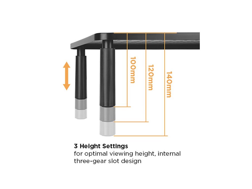 Podstavec nabízí možnost výškového nastavení ve třech úrovních 10 / 12 / 14 cm, aby vyhovoval potřebám opravdu každého uživatele. Nepřetěžujte svou krční páteř a šíjové svaly, pozvedněte svůj monitor do správné výšky.