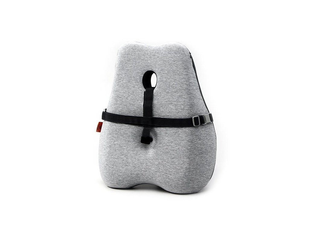 Bederní opěrka, ergonomická, přídavný nastavitelný polštářek, paměťová pěna, odnímatelný potah, nastavitelný popruh, modrošedá