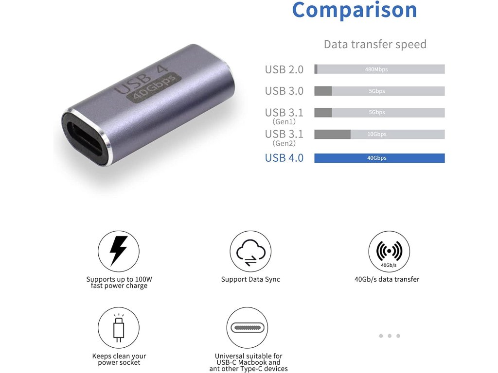 - USB 4.0: Podporuje až 100W napájení, poskytuje nejrychlejší nabíjení vašeho zařízení. Rychlosti přenosu dat až 40 Gbps vám umožní přenášet soubory s velkou kapacitou, jako jsou HD videa, během několika sekund. Poskytuje plynulé video fotografie pro monitory 4K a 8K