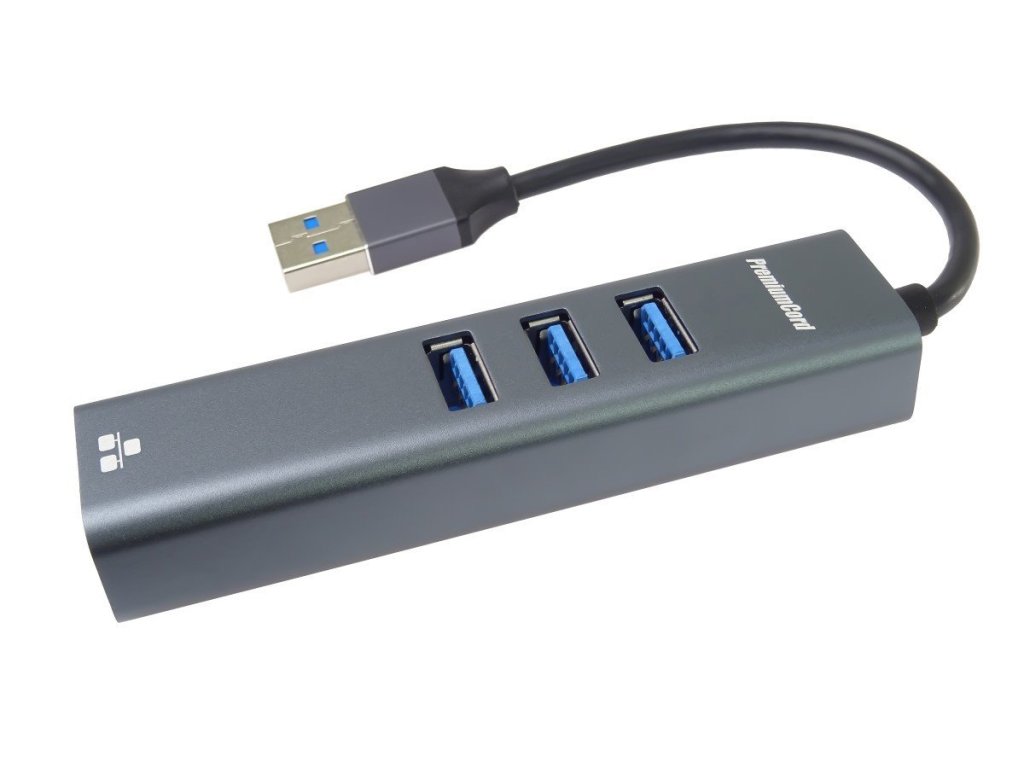 PremiumCord adaptér USB3.2 -> LAN RJ45 ETHERNET 10/100/1000 MBIT + 3x USB3.2 port
