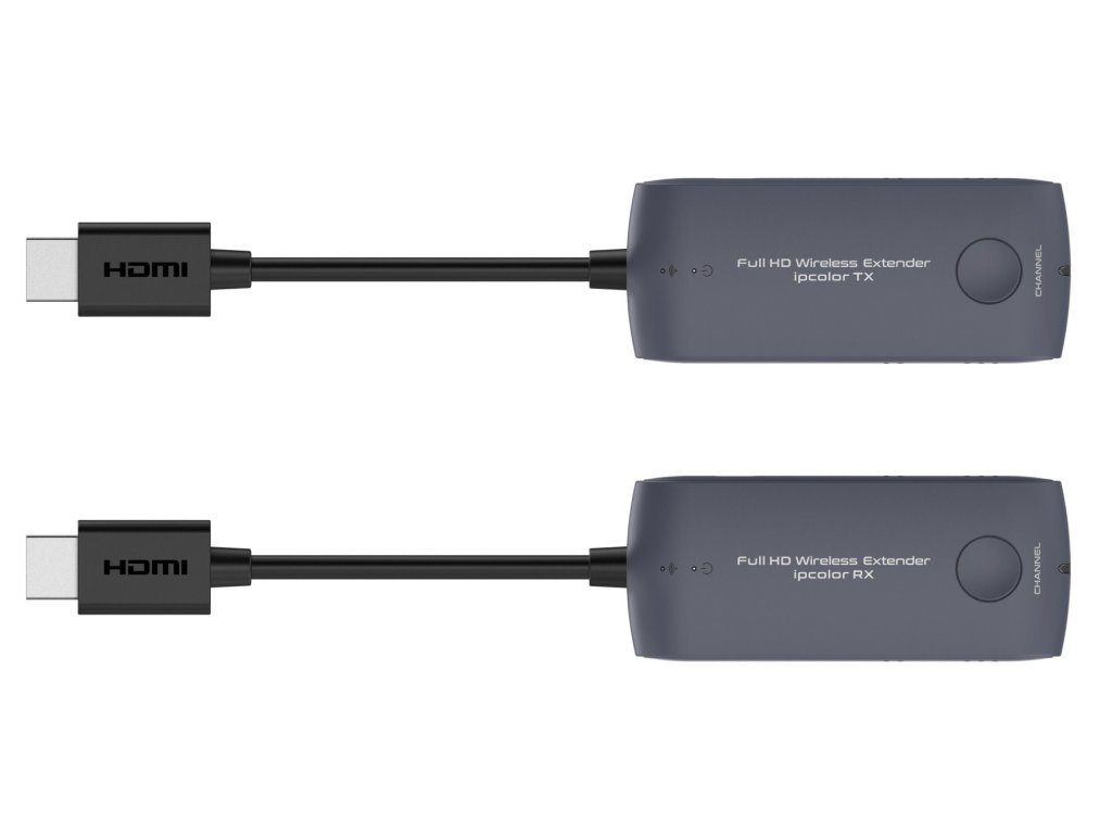 - Vysílací a přijímací adaptéry mají krátký HDMI kabel pro snadné zapojení do počítače a zobrazovače nebo TV.