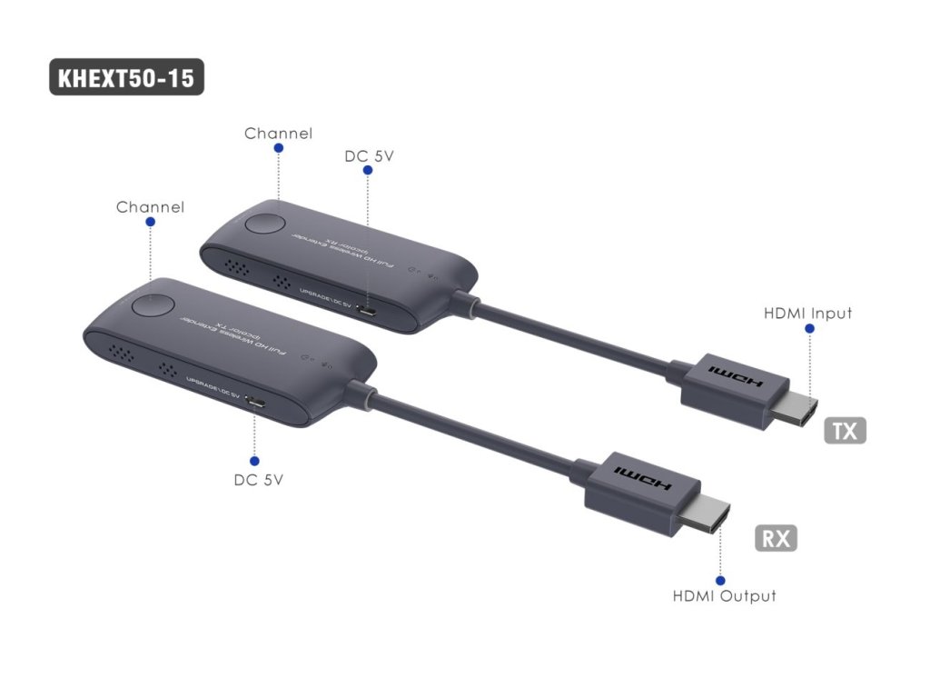- Bezdrátový vysílač a přijímač signálu HDMI pro spojení na 20m
