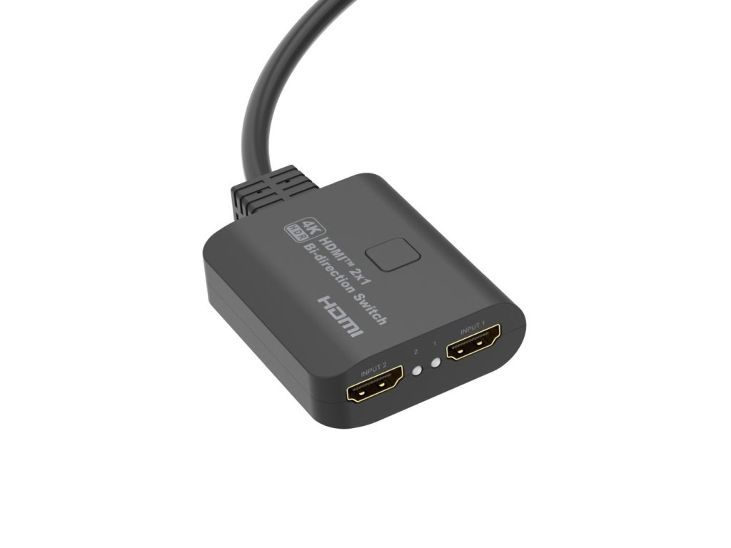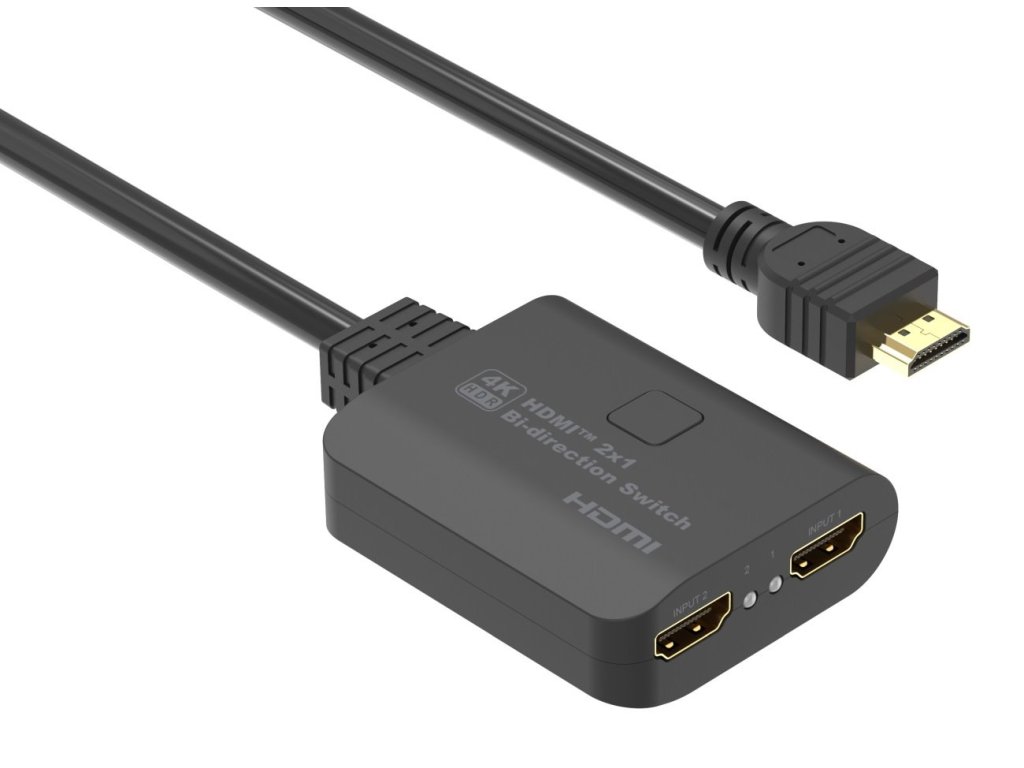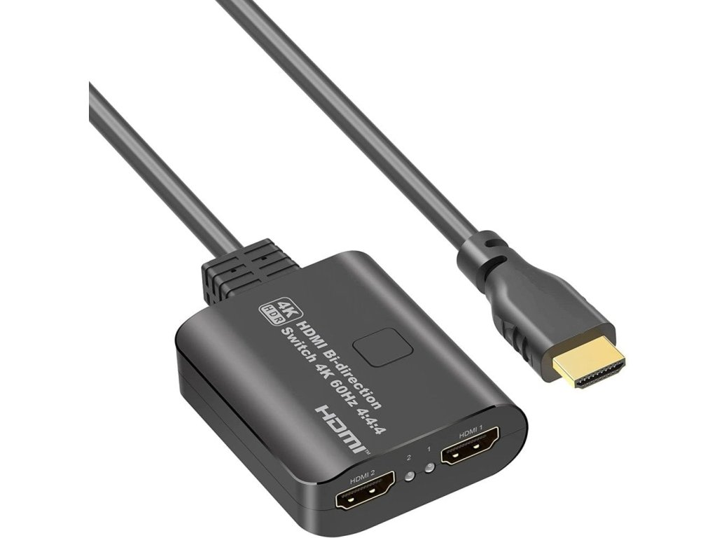 HDMI 2.0 Switch 4K@60Hz, 4:4:4 obousměrný 2-1 nebo 1-2. 2 HDMI zařízení sdílejí 1 HDMI obrazovku nebo přepínač z jednoho zdroje HDMI signálu přepíná na dva monitory. Výběr zařízení je tlačítkem na přepínači