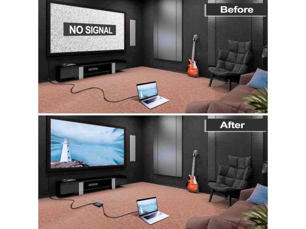 HDMI repeater může být připojen POUZE na konci kabelu u cílového zařízení. NIKDY ho nepřipojujte přímo ke zdroji signálu (např. hned za počítač).