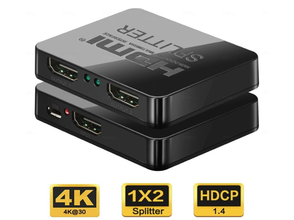 HDMI Video Splitter 1 => 2 Porty, 3D, 4K x 2K, FULL HD s napájením z USB. Můžete připojit několik HDMI obrazovek k jednomu HDMI zdroji signálU
