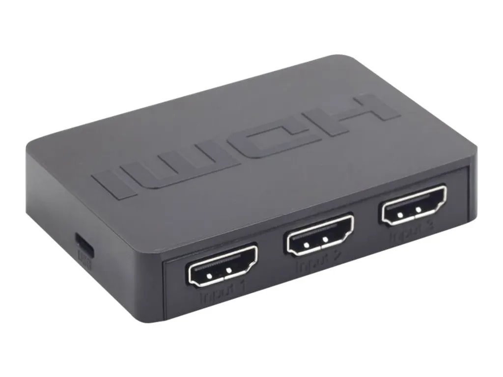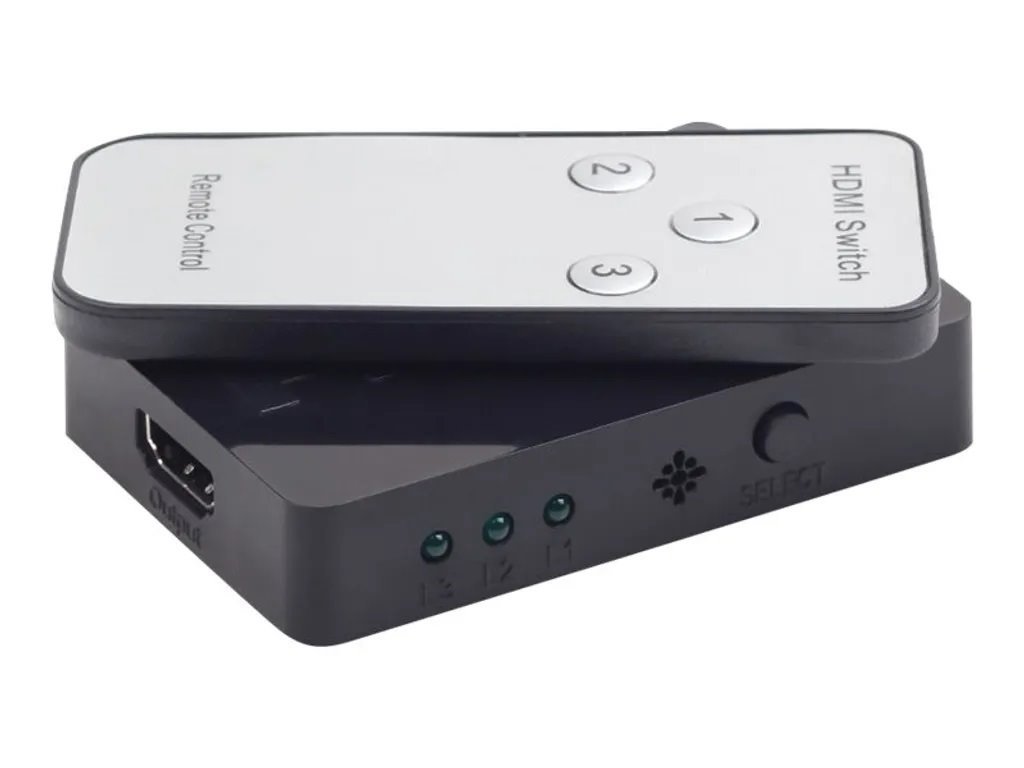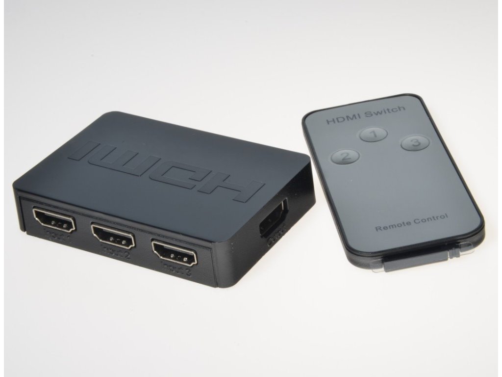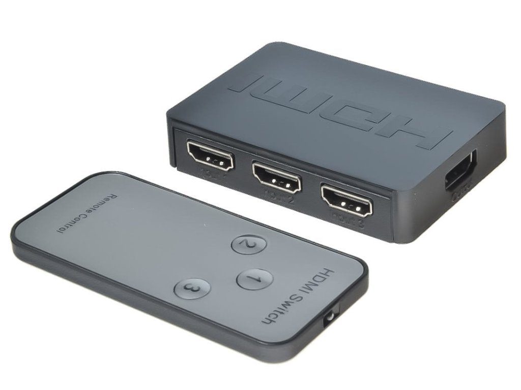 HDMI switch 3:1 s dálkovým ovladačem. 3 HDMI zařízení sdílí 1 HDMI výstupní zařízení (obrazovku). Výběr zařízení tlačítkem nebo dálkovým ovládáním