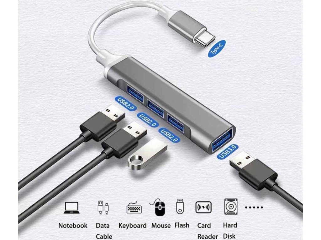 - Jeden port může pracovat rychlostí: SuperSpeed USB 3.2 Gen 1 (5Gbps), ostatní tři porty rychlostí High Speed USB 2.0 (480Mbps)