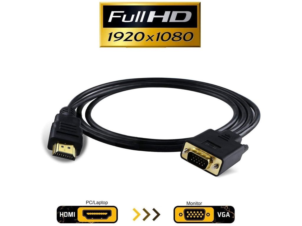 - Převodník integrovaný v kabelu umožňuje propojit zařízení s výstupem HDMI se staršími monitory nebo TV s VGA konektorem.Podporuje rozlišení FULL HD 1080P ( 1920x1080@60Hz ), největší výhoda je integrace převodníku do kabelu, není potřeba přídavné napájení.