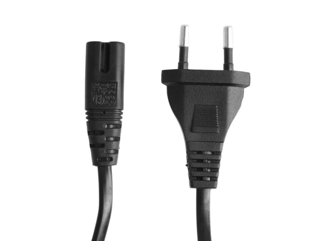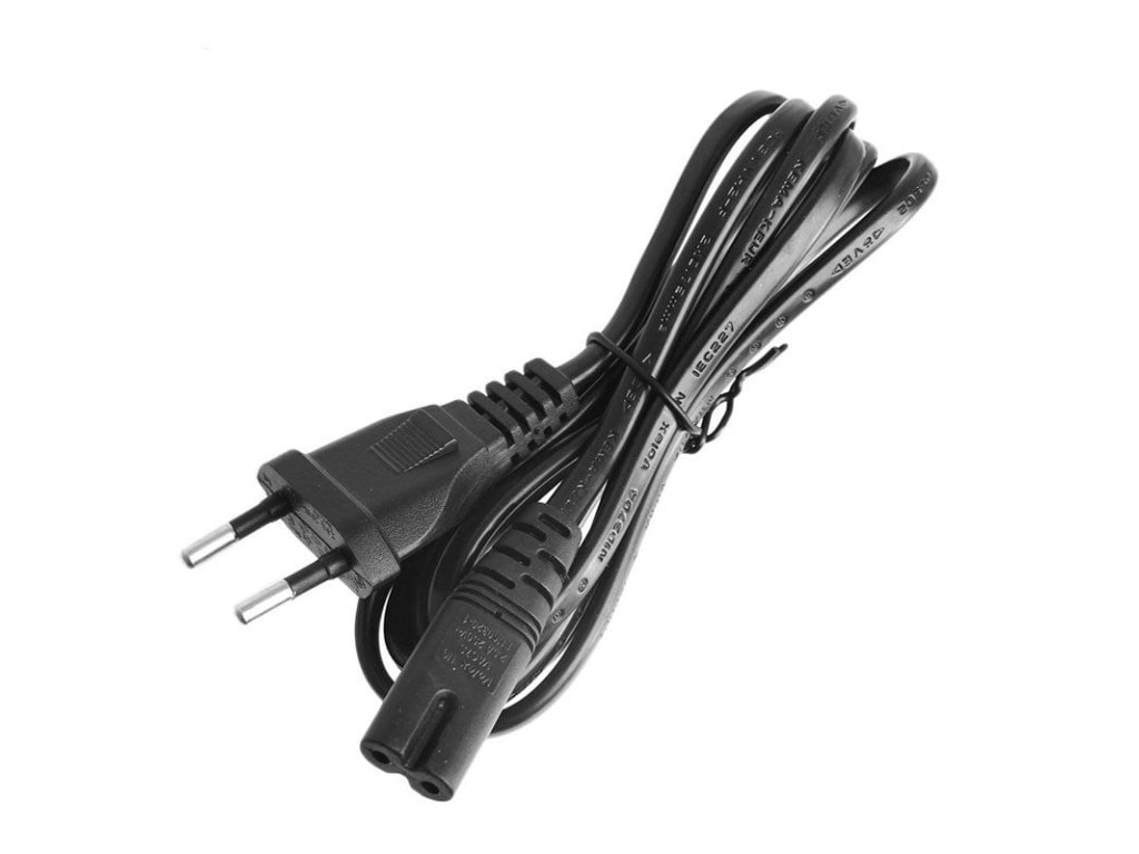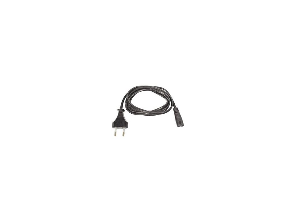 Napájecí kabel v černém provedení pro napájecí adaptér. Dvoužilový kabel je zakončený koncem v podobě ležaté osmičky.