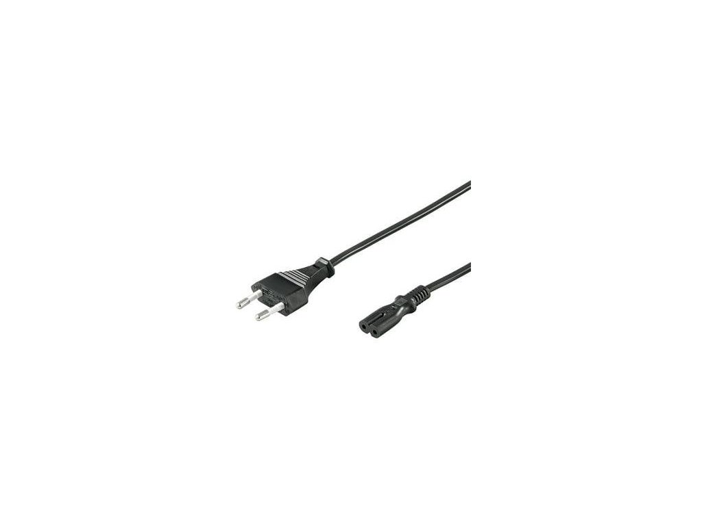 Napájecí kabel v černém provedení pro napájecí adaptér. Dvoužilový kabel je zakončený koncem v podobě ležaté osmičky.
