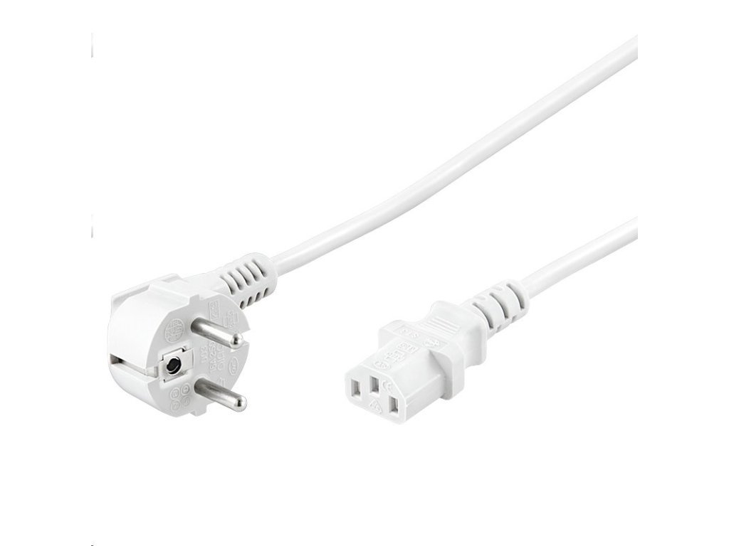 Napájecí kabel v bílem provedení pro počítač nebo monitor. Třížilový kabel je zakončený standardní přístrojovou zástrčkou.