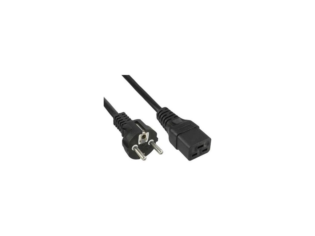 Napájecí kabel v černém provedení pro počítač nebo UPS s konektorem IEC 320 C19 pro 16A . Třížilový kabel je zakončený přístrojovou zástrčkou.